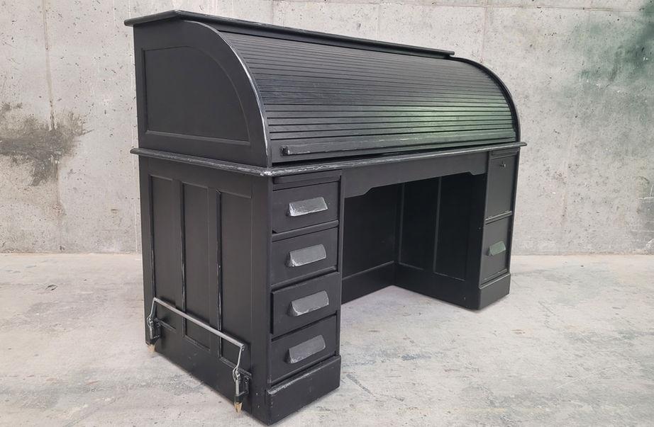 Oversized roll top desk using original base cabinets and desk insert, with moving tambour